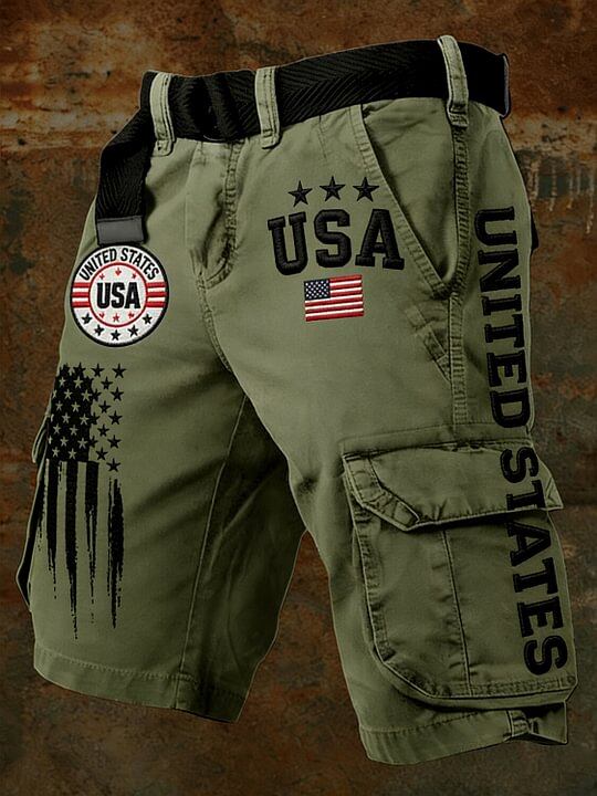 Men's American Flag Art Print Denim-Like Casual Shorts
